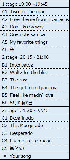 各々ボサノバとバラードにアレンジして演奏しました。ライブのダイジェスト