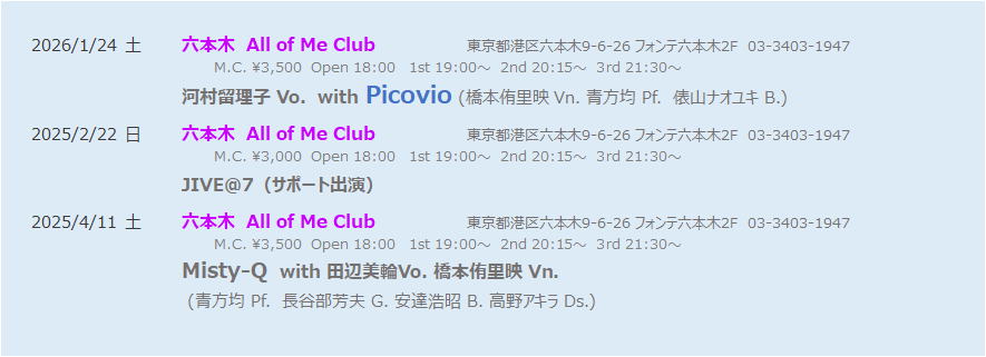 主な出演ジャズクラブ(Link)