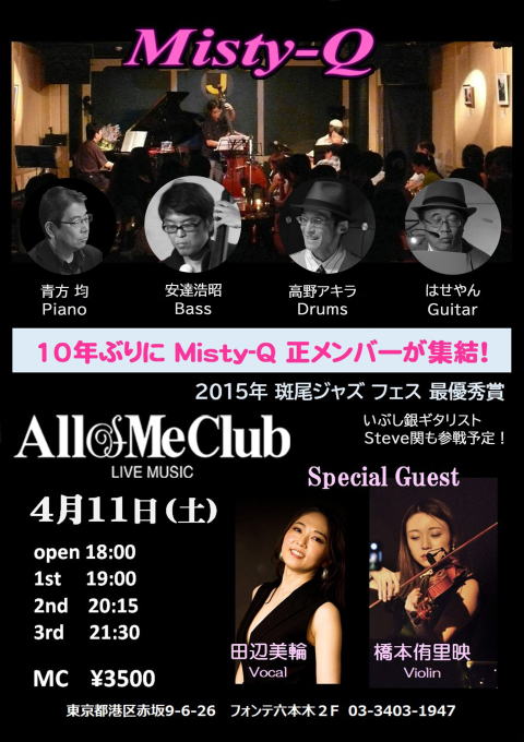 Misty-Q : 青方均(Pf)、はせやん(G)、安達浩昭(B)、高野アキラ(Ds)